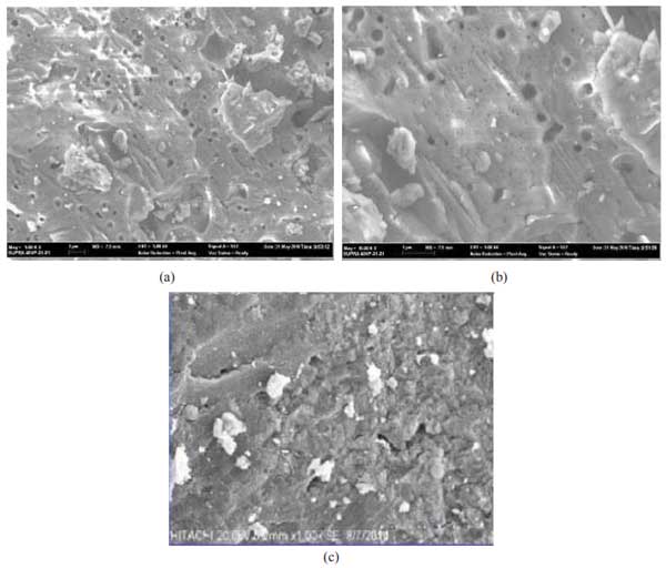 圖1:活性炭的形態(a)放大5000x(b)放大10000x和(c)原材料。