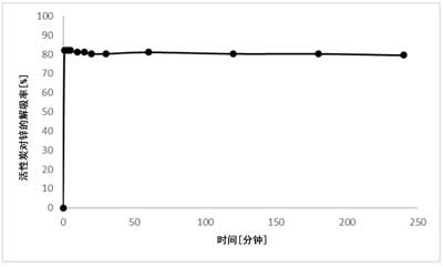 圖3:去除鋅與時間的關系。重復進行實驗,結果范圍最大為3個百分點。