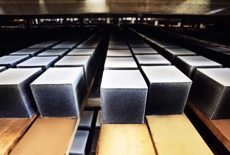 韓研股份為蜂窩活性炭行業高質量發展不懈努力,不斷加強工藝創新,獨創出全新二次活化工藝量產CTC高達80%的蜂窩活性炭產品。