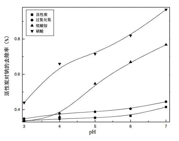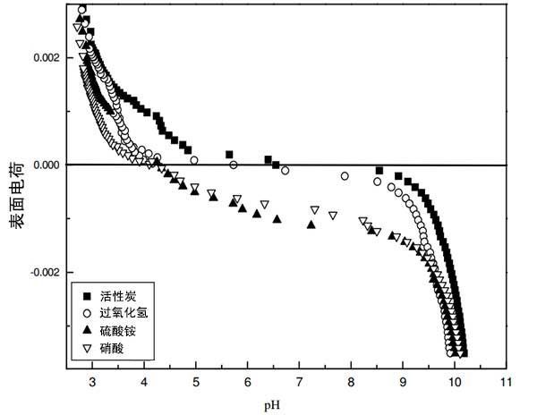 選擇用于改性活性炭表面的試劑都是氧化劑,目的是增加表面官能團的密度。從改性活性炭的化學表征結果可以看出,該任務成功實現。從圖1中可以看出,從活性炭和幾種氧化的活性炭動的酸度以相同的順序增加。酸度增加是由于存在羧基,酚類等酸性基團。