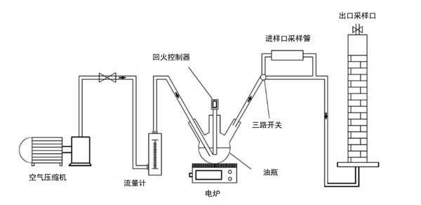 如圖1所示,在裝滿5g顆粒活性炭的采樣管的入口和出口處收集3分鐘的模擬烹飪油煙樣品。采樣重復3次。取出樣品管中的顆粒活性炭,轉移到燒瓶中,并使用超聲儀用15mL四氯化碳洗滌5分鐘。收集清潔液并將其轉移到另一個燒瓶中(標記為A)。用10mL四氯化碳再次洗滌顆;钚蕴,并收集清潔液并將其轉移到燒瓶A中。