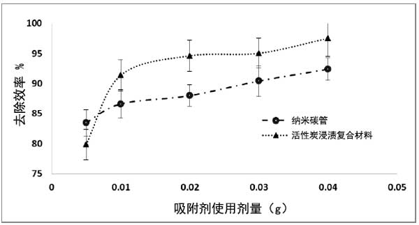 活性炭浸漬聚丙烯腈和苯乙烯材料是完全去除水中活性紅染料的好用吸附劑。采用簡單的沉淀聚合法制備了聚(丙烯腈-苯乙烯)浸漬活性炭生產的復合材料,在該技術應用中,制備的材料成本低,在室溫下與少量吸附劑的接觸時間較短時發(fā)生快速吸附現象,并且其以高效率再生更多循環(huán),這使得接觸裝置的尺寸更小,這反過來又直接影響到該技術的運行成本和生產能力。但是多壁碳納米管加活性炭材料的結合使用,可以在較短的吸附時間內很快地去除水溶液中的染料。