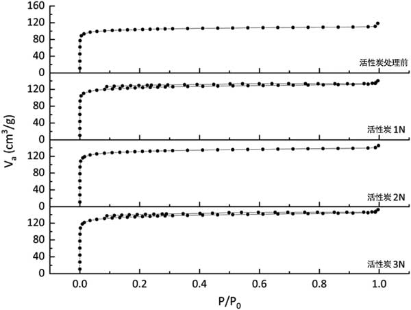 圖1:活性炭處理前后的等溫線(xiàn)曲線(xiàn)。