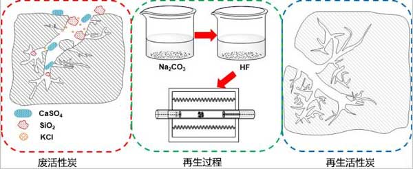 活性炭在燒結煙氣處理后的再生,采用了Na2CO3溶液、HF溶液和CO2的新型連續處理方法可以有效地從燒結煙氣凈化過程中再生廢活性炭。無機化合物如CaSO4和SiO2以及KCl的沉積導致活性炭失活,Na2CO3溶液可以將CaSO4轉化為CaCO3并去除水溶性化合物,如KCl。硫轉化率首先顯著增加,然后隨著Na2CO3濃度的增加變化減慢。當Na2CO3濃度為0.5mol/L時,硫轉化率自由基高達94.6%。另外在各種溶劑濃度和溫度都達到較好的水平,總體再生效率可達111%
