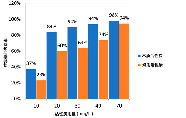 圖3:柱狀藻紅去除量與水基質(zhì)中應(yīng)用活性炭濃度的函數(shù)關(guān)系。