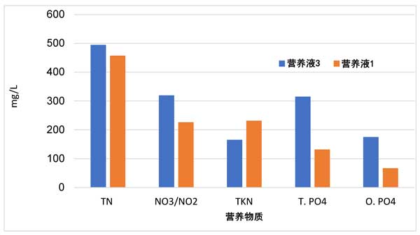 活性炭降低過量微量營養素濃度的結果表明,通過維持圖2a中給出的推薦值(RV),兩種處理一起可能能夠允許循環。數據顯示,經過兩次處理后,較高濃度的K和Ca降低到接近推薦值,允許處理過的溫室作物營養液再循環。這里可能要提到的是,在活性炭處理后,兩種營養液中的磷酸鹽含量都增加了,這歸因于吸附劑表面可能殘留一些游離磷化合物。將其自由洗滌、干燥并重復使用以獲得所需的結果。還使用RO處理營養液。結果表明,所有營養物質都顯著減少(>98%),這可以證實,如果營養液的處理應符合直接處置的規定,反滲透將是最佳選擇。考慮到反滲透,可以很容易地實現直接處置限制,并帶來經濟收益和環境效益。圖3顯示了營養液中營養成分的匯總,顯示TN和NO3/NO2等氮成分的濃度較高,而正磷酸鹽的濃度最低。否則,正磷酸鹽具有很強的反應性,并與參與環境轉化和新陳代謝的其他成分相互作用。出于這個原因,調節磷以保護湖中的藻類繁殖。