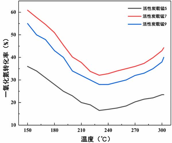 圖3:活性炭載錳催化劑的NO轉化率。