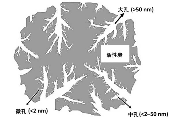 圖2:活性炭的多孔結(jié)構(gòu)。