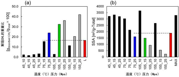 圖2:(a)TG測量期間解吸的CHL的重量比。(b)浸漬過程后的SSA。