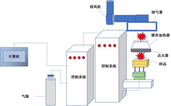 圖1:錐形量熱儀測試裝置結構示意圖。