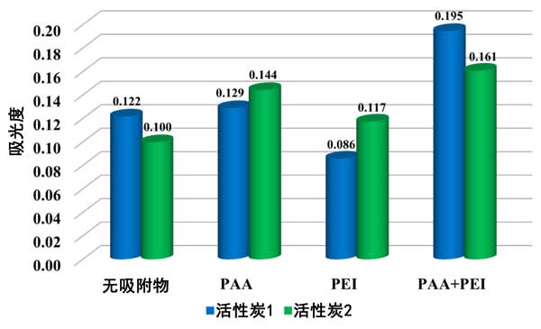 活性炭用于離子聚合物吸附,在測試活性炭的特點是對離子聚合物具有高吸附能力。聚丙烯酸的吸附量達到約190mg/g,聚乙烯亞胺的吸附量達到約80mg/g。由于在pH3的測試系統中呈現完全不同構象的聚合物鏈的競爭,聚合物從二元溶液中的吸附顯著下降。離子聚合物對活性炭懸浮液的穩定性有很大影響。它們的存在也會影響固體顆粒形成的表面電荷密度、zeta電位和聚集體尺寸。活性炭1表面上顯著發達的PEI鏈的最垂直吸附通過橋聯絮凝導致懸浮液不穩定。另一方面,在含有活性炭2材料和離子聚合物的體系中發生了空間和電空間穩定。由于耗盡力產生了額外的穩定機制,雙星系統是最穩定的。聚乙烯亞胺和聚丙烯酸大分子之間的競爭導致一些聚合物鏈保留在溶液中,這顯著降低了絮凝趨勢。