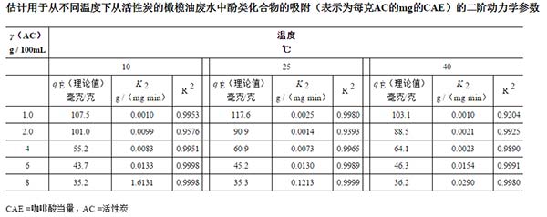 橄欖油廢水中酚類化合物處理由大多都由活性炭來吸附,本期帶大家了解活性炭的吸附劑量和溫度的影響。在最佳條件下(每100毫升8克活性炭),每克活性炭表示當量mg的活性炭的最大吸附容量為10.8℃時為35.8℃,25℃為35.4℃,40℃時為36.1℃ C。偽二階模型被認為是最適合于動力學結果,并且選擇Langmuir等溫線來更好地描述吸附系統。結果證實了活性炭從橄欖油流出物中幾乎除去所有酚類化合物部分的效率。