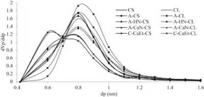 下圖顯示了改性活性炭的微孔尺寸分布。隨著孔隙變寬,椰殼活性炭的平均孔徑由于HNO 3而增加,而Ca(NO 3)2則減少。然而,煅燒表現出最大的孔徑減小,因為 形成平均尺寸為0.4nm的更窄的微孔。煅燒樣品顯示在比那些胺化Ca的碳的微孔更好的改善(NO 3)2,其可有效地提高二氧化碳物理吸附。這可能是由于在相鄰孔壁上形成更多的CaO,導致孔隙空間減少。
