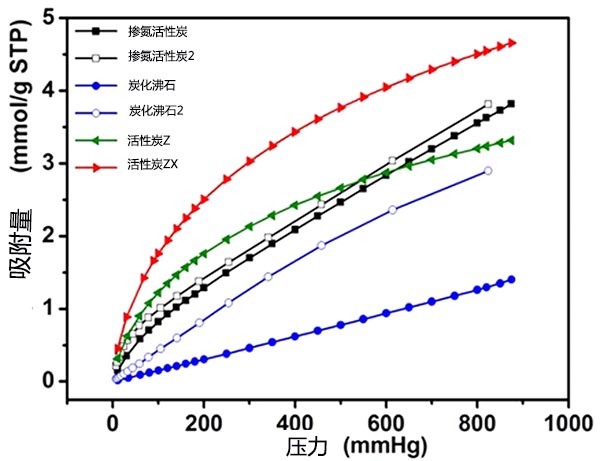 圖3顯示炭化沸石對CO 2和N 2的吸附比較低。值得注意的是, 與其他相比,摻氮活性炭在 p > 0.5 bar時顯示出較高的CO 2吸附,這主要歸因于四極CO 2分子與不飽和金屬位點中的正電荷之間的相互作用。此外,除摻氮活性炭外,還包括CO2和N 2吸附容量遵循活性炭Z>活性炭ZX>炭化沸石的順序,這意味著這些前體生產的氮摻雜活性炭具有顯著的氣體吸附性能。