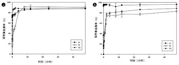 圖3:初始pH對Cr,Ni和Zn的吸附去除的影響使用。