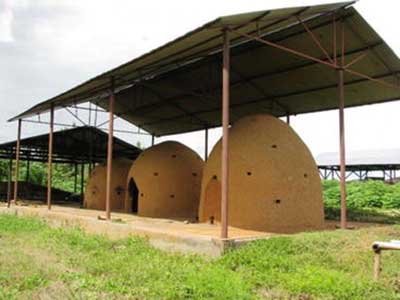 在這個(gè)過(guò)程中,活性炭前植物材料被切成均勻尺寸堆在窯中水平堆放(圖1)。然后用磚塊封閉門,并在外面抹上泥漿,以便更好地隔熱并防止泄漏。通過(guò)在水平和垂直方向上調(diào)節(jié)開(kāi)口將溫度保持在400-500℃來(lái)實(shí)現(xiàn)碳化。所有開(kāi)口在2天后關(guān)閉,以便不允許空氣進(jìn)入窯以防止活性炭原炭化料著火。冷卻一天以將溫度降低至100℃。將炭化料從窯底部的開(kāi)口中取出并洗滌,干燥并粉碎,并進(jìn)一步進(jìn)行化學(xué)活化,兩種活性炭分別用硝酸和磷酸活化獲得四種不同屬性的活性炭。并用蒸餾水洗滌活性炭以除去過(guò)量的酸,并在150℃下干燥12小時(shí),獲得的粉末狀活性炭具有40-50μm篩目的粒度。