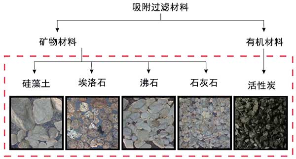 在分析中使用活性炭和未經(jīng)修飾的礦物材料,例如沸石,石灰石砂,硅藻土和埃洛石(圖1)。礦物材料是不經(jīng)受預(yù)處理,以確保使用最經(jīng)濟(jì)上有利的材料。本期使用的活性炭是一種微孔材料,由微孔表面和體積值和相對(duì)較低的中孔表面值證明該材料的表面。硅藻土,沸石和埃洛石是中孔材料,因此其特征在于具有中間孔的平均比表面積,所述中孔具有不規(guī)則尺寸和形狀的窄裂縫形狀。在埃洛石中觀察到這些礦物中介孔的大比表面積和體積,而硅藻土的孔隙比較少,石灰石砂可歸類為無孔材料。