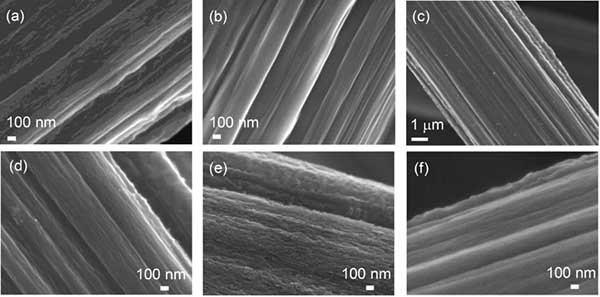 幾種活性炭的FESEM圖像顯示在圖1中。涂有錫酞菁的活性炭的表面形態與沒有涂層的活性炭相似。活性炭在550℃下熱氧化后,在表面上產生氧化錫納米顆粒。另外,活性炭上存在許多淺細長凹痕,這是通過精細表面蝕刻產生的。雖然僅通過FESEM觀察很難清楚地證明這種表面結構變化,但拉曼光譜和電化學測量可以顯示出如下所述的明顯差異。表面蝕刻的程度取決于熱氧化的溫度。隨著溫度的升高,表面變粗糙。應注意,在每個處理溫度下在活性炭表面上均勻地獲得粗糙化。