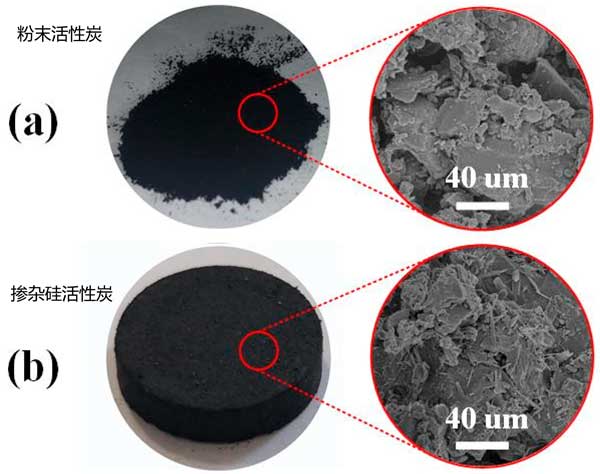 制備活性炭載硅復合材料的步驟如下:將粘合劑和粉末狀活性炭充分混合以增加接觸面積。在該階段期間還將溶解的硅酸鹽添加到混合物中。通過手動液壓在15MPa的壓力下進行樣品的壓縮模塑。進行熱處理以固化粘合劑,這促進了模塑并增加了強度。它在管式爐中進行。將樣品加熱直至溫度在氮氣中達到200℃達60分鐘。在通過真空干燥除去雜質(zhì)后,我們獲得了柱狀模塑復合吸附劑。當然要成為合格的產(chǎn)品還需要優(yōu)化過程,比例添加材料等。