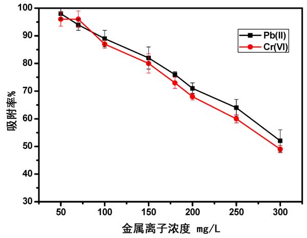 圖3:金屬離子濃度對吸附效率的影響。