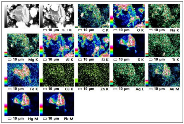 圖6:B區(qū)土壤樣品(被重金屬?gòu)U物污染)的元素圖。